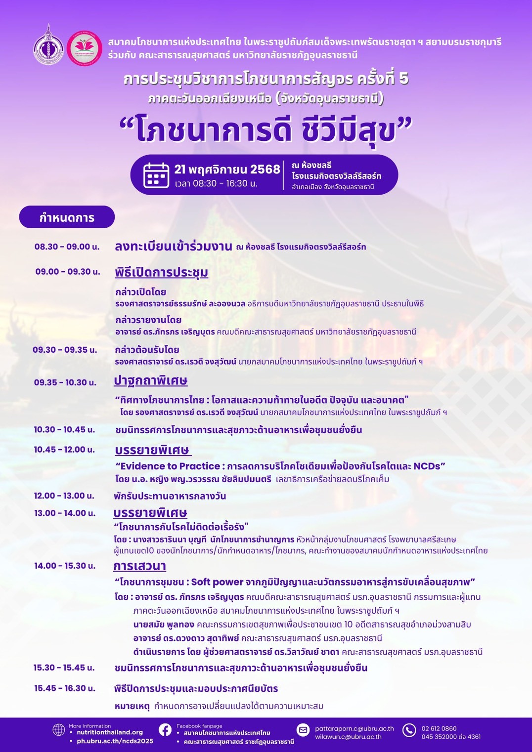 ร่วมกับ คณะสาธารณสุขศาสตร์ มหาวิทยาลัยราชภัฏอุบลราชธานี
